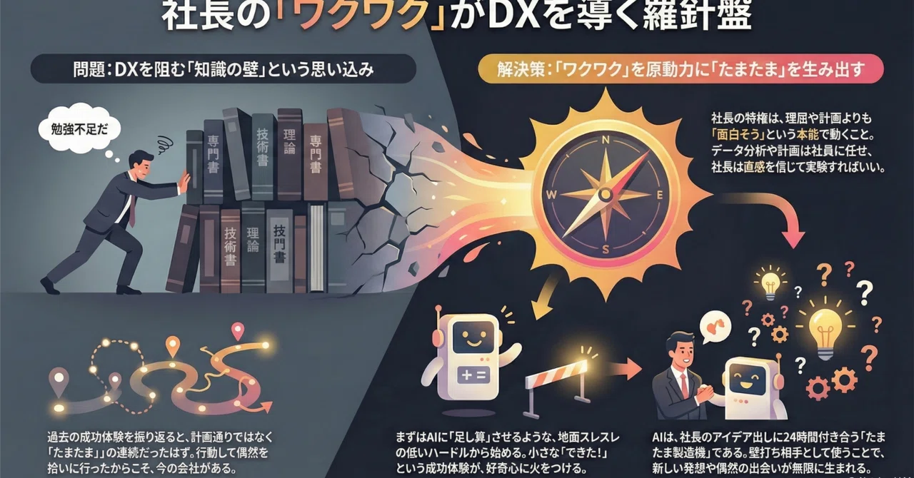 この**「たまたま」を拾いに行く冒険心**こそが、DXを成功させる唯一の方法です。