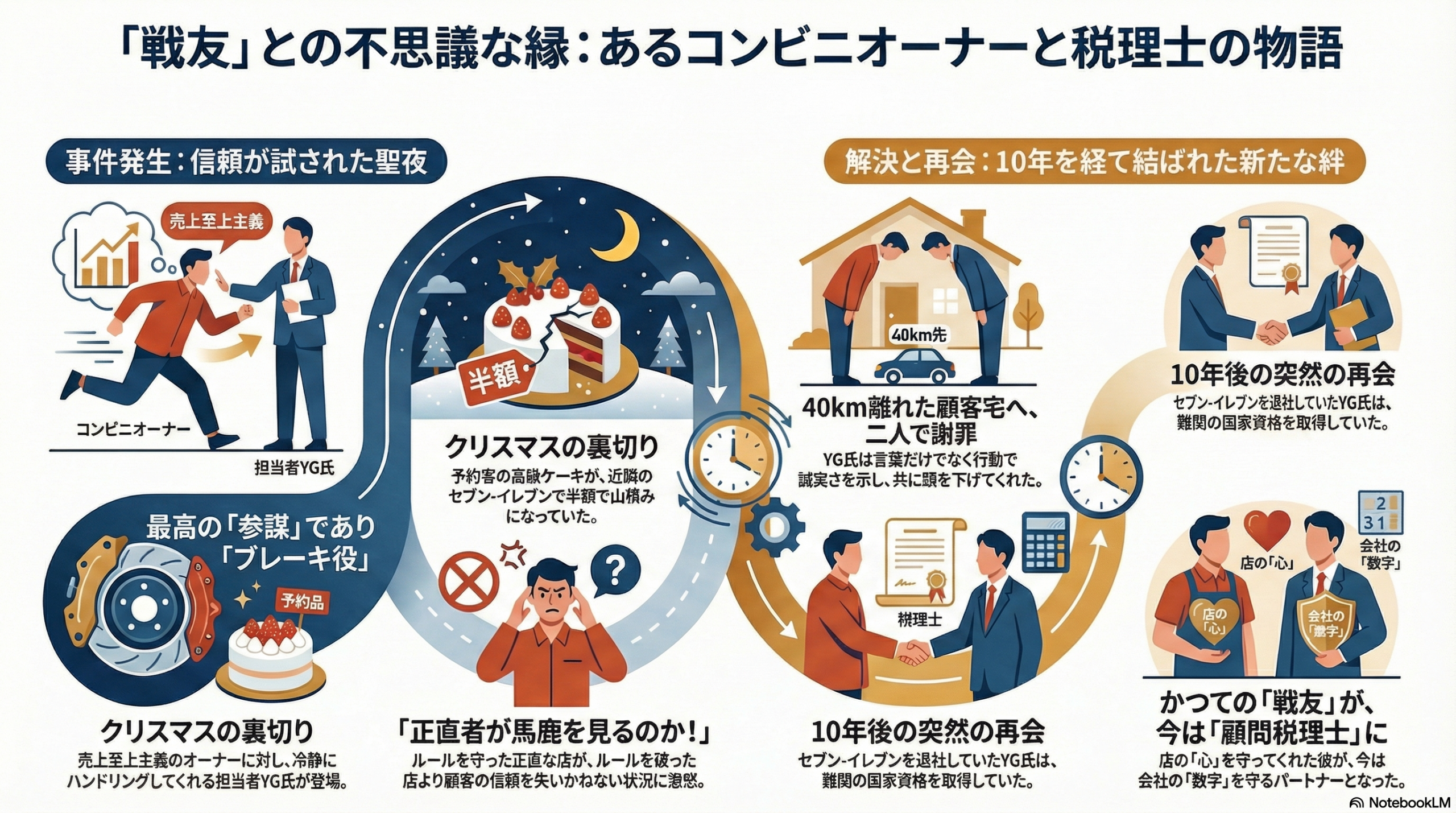 「オーナー、どういうことや」 電話口の声は震えていました。 「あんたの店で予約して買ったケーキな、帰り道にある別のセブン-イレブンに行ったら、半額で山積みになってたぞ」